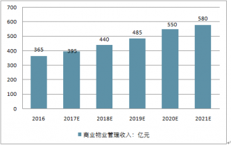 伴隨著我國商業(yè)地產(chǎn)的蓬勃發(fā)展,我國商業(yè)物業(yè)管理行業(yè)發(fā)展空間巨大。到2021年我國商業(yè)物業(yè)管理行業(yè)營業(yè)收入將達(dá)到580億元。