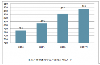 至2019年9月,我國農(nóng)產(chǎn)品流通行業(yè)農(nóng)產(chǎn)品綜合市場達(dá)到了846個,比2016年的832個增加了14個。