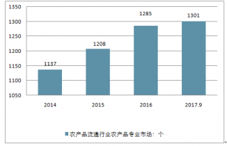 至2019年9月,我國農(nóng)產(chǎn)品流通行業(yè)農(nóng)產(chǎn)品專業(yè)市場達(dá)到了1301個,比2016年的1285個增加了16個。