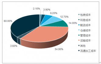 農(nóng)產(chǎn)品流通過程包括運(yùn)輸、包裝、裝卸、搬運(yùn)、儲(chǔ)存和加工配送等環(huán)節(jié),并且要經(jīng)過多個(gè)節(jié)點(diǎn)企業(yè),運(yùn)輸規(guī)模小,致使農(nóng)產(chǎn)品運(yùn)輸成本、儲(chǔ)存加工保鮮成本、流通中介費(fèi)用等偏高。我國(guó)農(nóng)產(chǎn)品流通成本一般占總成本的40%左右,其中鮮活產(chǎn)品及果蔬產(chǎn)品要占60%以上,而國(guó)外發(fā)達(dá)國(guó)家物流成本一般控制在10%左右。