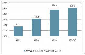 至2019年9月,我國(guó)農(nóng)產(chǎn)品流通行業(yè)農(nóng)產(chǎn)品專業(yè)市場(chǎng)達(dá)到了1301個(gè),比2016年的1285個(gè)增加了16個(gè)。