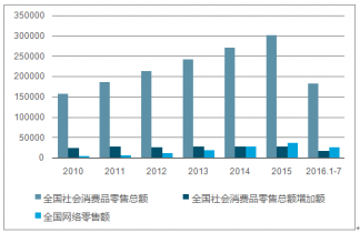 2010-20167月全國社會(huì)消費(fèi)品零售總額與網(wǎng)絡(luò)零售額