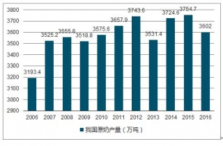2006-2016年我國原奶產(chǎn)量走勢圖