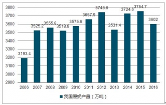 2006-2016年我國原奶產(chǎn)量走勢圖