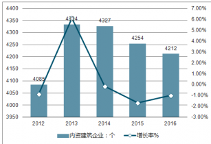 2012-2016年廣東省內(nèi)資建筑業(yè)企業(yè)單位數(shù)及增長(zhǎng)率