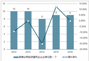 2012-2016年廣東省港澳臺(tái)商獨(dú)資建筑業(yè)企業(yè)單位數(shù) 及增長(zhǎng)率