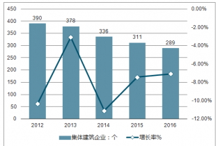 2012-2016年廣東省集體建筑業(yè)企業(yè)單位數(shù)及增長率