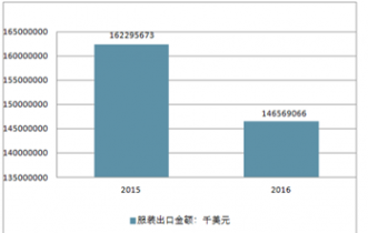 2015-2016年我國服裝出口金額走勢