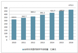 2010年全球血液透析服務(wù)市場規(guī)模為320.5億美元,2016年增長至470.3億美元。