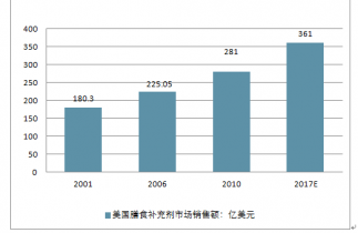 2001-2019年美國膳食補(bǔ)充劑市場(chǎng)銷售額預(yù)測(cè)(單位:億美元)