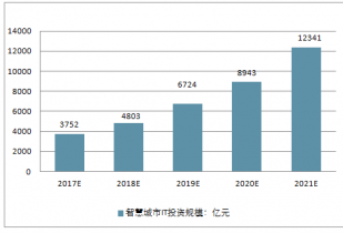 2019年我國(guó)智慧城市IT投資規(guī)模將達(dá)到3,752億元,未來(lái)五年(2017-2021)年均復(fù)合增長(zhǎng)率約為31.12%,2021年IT投資規(guī)模將達(dá)到12,341億元。