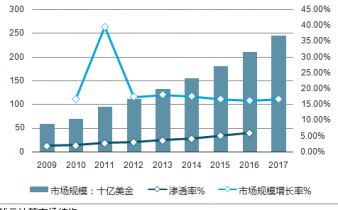 2009-2017全球云計(jì)算市場(chǎng)及滲透率持續(xù)增長(zhǎng)