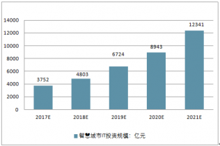 2019年我國智慧城市IT投資規(guī)模將達(dá)到3,752億元,未來五年(2017-2021)年均復(fù)合增長(zhǎng)率約為31.12%,2021年IT投資規(guī)模將達(dá)到12,341億元。