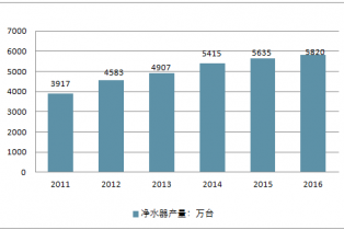 2011-2016年中國凈水器行業(yè)產(chǎn)量情況
