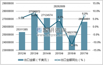 2012-2019年中國(guó)箱包及類似容器出口金額統(tǒng)計(jì)圖