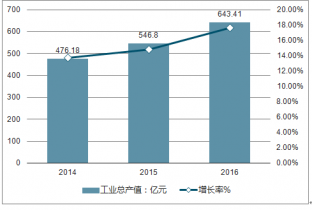 2014-2016年中國(guó)商用廚具行業(yè)工業(yè)總產(chǎn)值及增長(zhǎng)率
