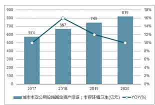 城市市政公用設施固定資產投 資:市容環(huán)境衛(wèi)生(億元) | 574 | 667 | 745 | 819 |
