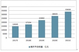 預(yù)計(jì)2017年我國婚慶市場規(guī)模將達(dá)到14,640億元,未來五年(2017-2021)年均復(fù)合增長率約為23.11%,2021年市場規(guī)模將達(dá)到33,630億元。