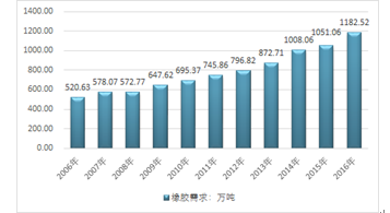 2006-2016年我國合成橡膠產(chǎn)量走勢
