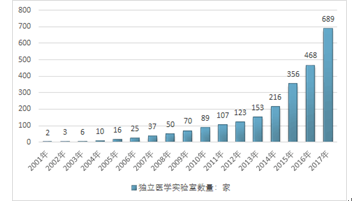2001-2019年中國(guó)獨(dú)立醫(yī)學(xué)實(shí)驗(yàn)室數(shù)量增長(zhǎng)情況