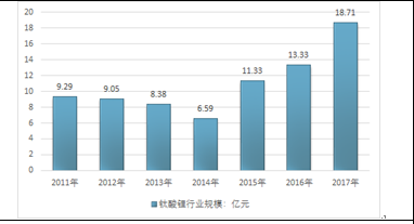 2019年我國鈦酸鋰行業消費量約12955噸,消費市場均價約14.44萬元/噸,國內銷售市場規模達到了18.71億元,近幾年我國鈦酸鋰行業市場規模情況如下圖所示: