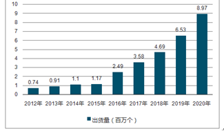 2012-2020年HUD 出貨量(百萬個)