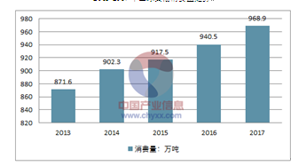 近年來,全球黃油消費量逐年上升,2013到2016年年均復(fù)合增長率為2.57%。預(yù)計2019年,全球黃油消費量將近970萬噸,同步增長3.0%。