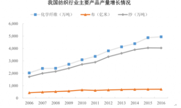 我國(guó)加入WTO以后,在國(guó)內(nèi)外市場(chǎng)需求的強(qiáng)勁推動(dòng)下,紡織行業(yè)快速發(fā)展,行業(yè)規(guī)模和經(jīng)濟(jì)效益持續(xù)增長(zhǎng)。2006年至2016年,我國(guó)紡織工業(yè)規(guī)模以上企業(yè)工業(yè)增加值年均復(fù)合增長(zhǎng)率9.48%,主營(yíng)業(yè)務(wù)收入年均復(fù)合增長(zhǎng)率10.67%,利潤(rùn)總額年均復(fù)合增長(zhǎng)率15.15%。