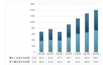 2010-2016年中國玩具行業細分市場規模情況