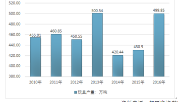 2010-2016年中國玩具行業產量情況
