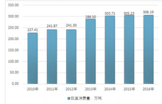 2010-2016年中國玩具消費量統計