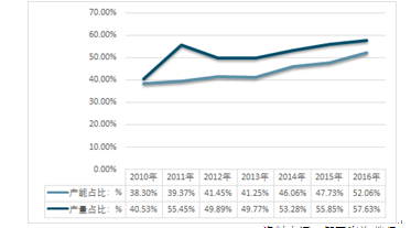 2010-2016年我國電解銅箔產(chǎn)能產(chǎn)量全球占比分析