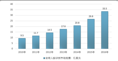 2010-2016年全球人臉識(shí)別市場(chǎng)規(guī)模走勢(shì)