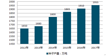 2012-2019年中國(guó)種子行業(yè)產(chǎn)量情況