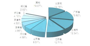 截至2019年9月各省市充電樁市場份額(單位:%)