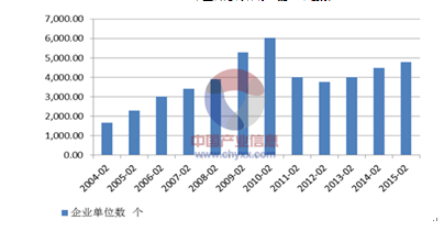 2004-2015 年金屬結(jié)構(gòu)件行業(yè)企業(yè)單位數(shù)
