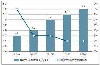 2016-2020年中國智能手機出貨量及增長率