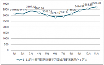 2019年1-11月中國(guó)互聯(lián)網(wǎng)外語(yǔ)學(xué)習(xí)領(lǐng)域月度活躍用戶