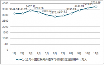 2019年1-11月中國(guó)互聯(lián)網(wǎng)外語(yǔ)學(xué)習(xí)領(lǐng)域月度活躍用戶