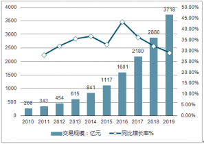 2010-2019年中國互聯網教育市場交易規模預測