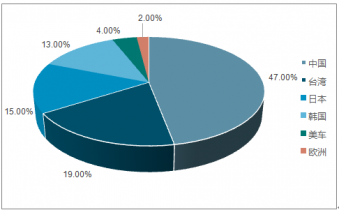 LED 外延片生產(chǎn)設(shè)備MOCVD 機(jī)保有量分布