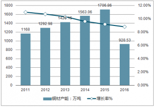 2011年-2016年Q2中國(guó)銅加工行業(yè)產(chǎn)能