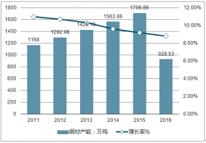 2011年-2016年Q2中國銅加工行業(yè)產(chǎn)能