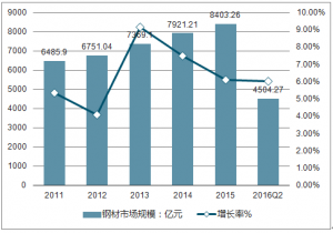 2011年-2016年Q2中國銅加工行業(yè)總產(chǎn)值