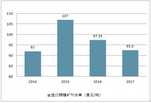 中國(guó)進(jìn)口銅精礦TC 長(zhǎng)單(美元/噸)