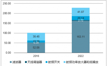 根據(jù)統(tǒng)計(jì)和預(yù)測(cè),智能手機(jī)射頻前端的市場(chǎng)規(guī)模在2016年達(dá)到101億美元,預(yù)計(jì)2022年市場(chǎng)規(guī)模將超過(guò)227億美元,復(fù)合增長(zhǎng)率達(dá)到14%。