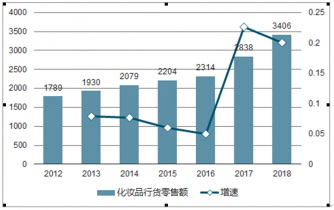 中國(guó)化妝品行貨零售額及增速