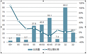 2019年各尺寸TV面板出貨量和增長(zhǎng)率