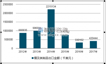 2019年我國鎳及其制品進口數(shù)量為636001357千克,進口金額為4633539131美元;2016年我國鎳及其制品進口數(shù)量為713371260千克,進口金額為4939893740美元。