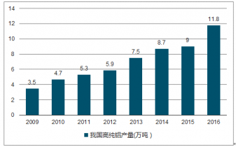2009-2016年我國高純鋁產(chǎn)量統(tǒng)計(jì)圖